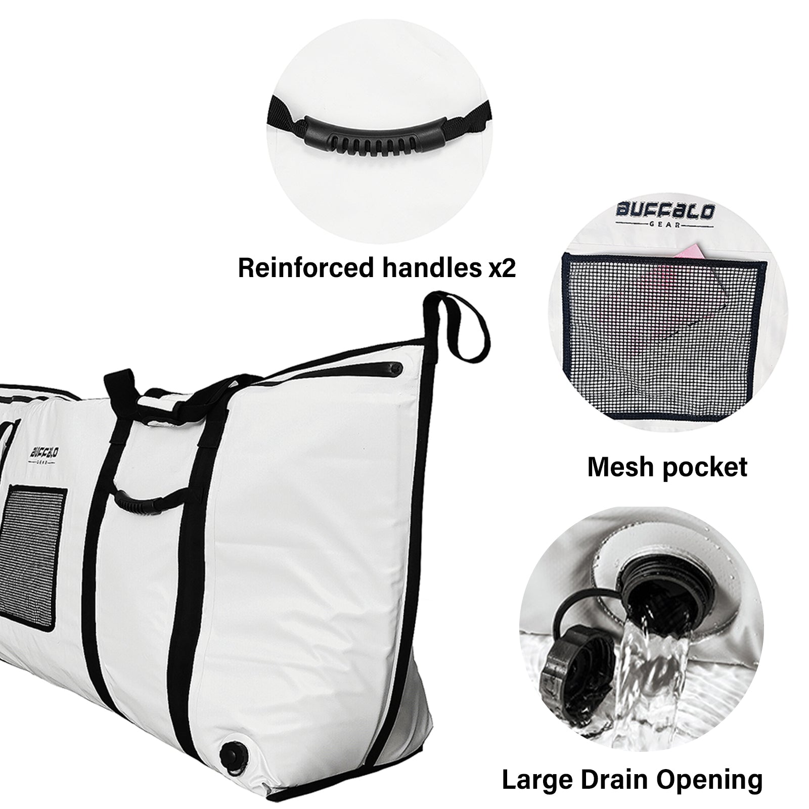 Keep your catch ice-cold and fresh for over 48 hours with the Buffalo Gear 72-inch fish cooler kill bag. Built for serious offshore anglers, this heavy-duty insulated bag is perfect for tuna, mahi-mahi, marlin, and sailfish. Engineered for durability, portability, and superior performance at sea.