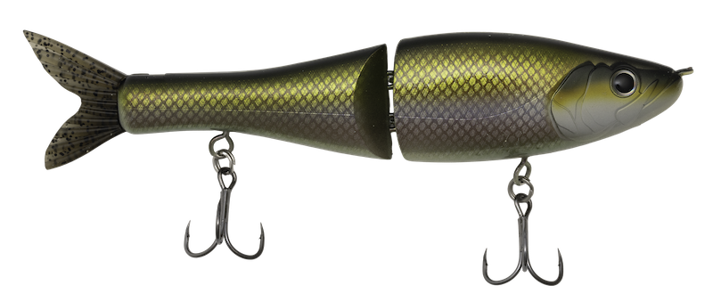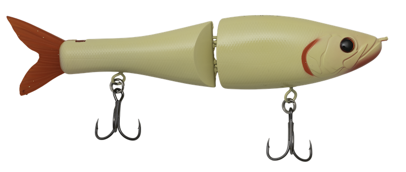 Poppa Pete is a silent slow-sinking glide bait weighing 5 Ounces and 10 inches in length, equipped with heavy-duty hardware, size 2/0 hooks, and rotating hangers. The tails are easily replaceable. Papa Pete has a nice wide glide on slow reel cranks and then can be shed fast for an erratic bait sh action and sinks extremely slow in a level position.