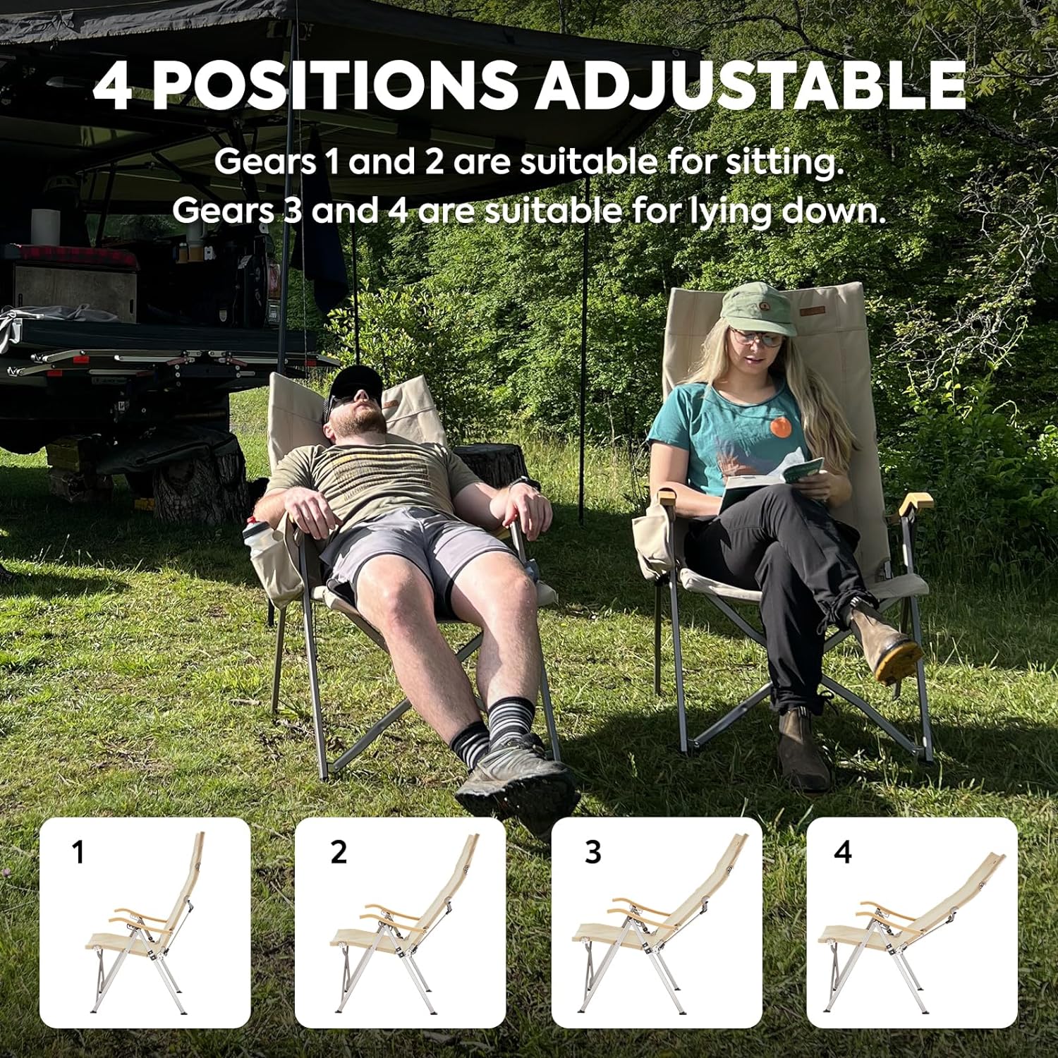 FUNCTIONAL & PORTABLE: Ha1600 Adjustable camping chair with 4-position design, reclining or sitting. Practical and comfortable for camping, on the patio or indoors. The upgraded thickened storage bag is more durable. Its comfortable leather shoulder strap allows you to carry it without stress.