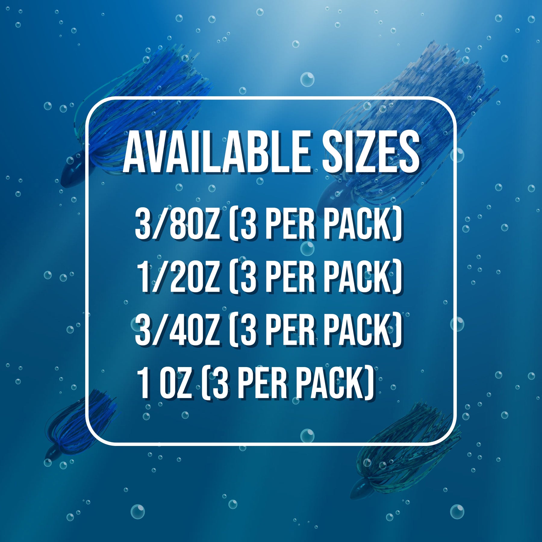 AVAILABLE COLORS: Black Blue Dark Pumpkin Brown Okeechobee Craw PB&J AVAILABLE SIZES: 3/8oz (3 per pack) 1/2oz (3 per pack) 3/4oz (3 per pack) 1 oz (3 per pack)