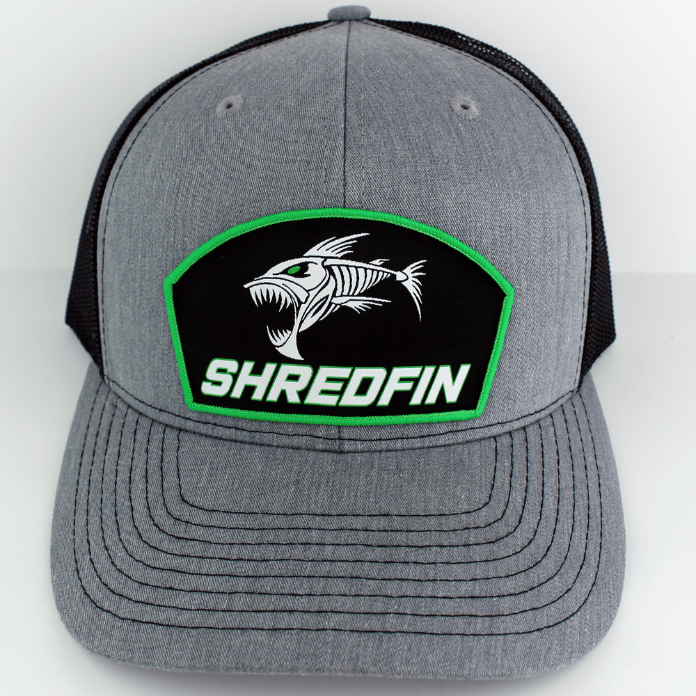 ShredFin Heather Gray & Black Patch Hat (Neon Green Border)