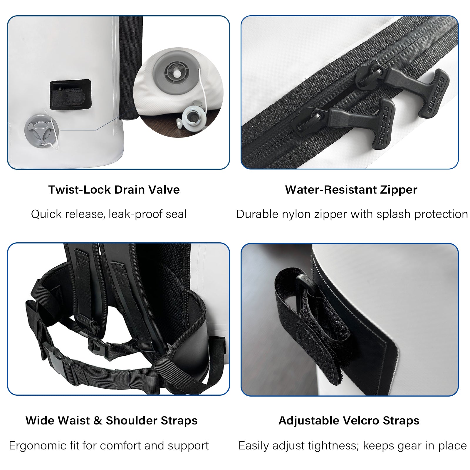 Constructed from 22oz double-sided tarpaulin with heat-welded seams, this backpack forms a sealed barrier that prevents leaks, odors, and spills—perfect for fish, ice, or beverages.