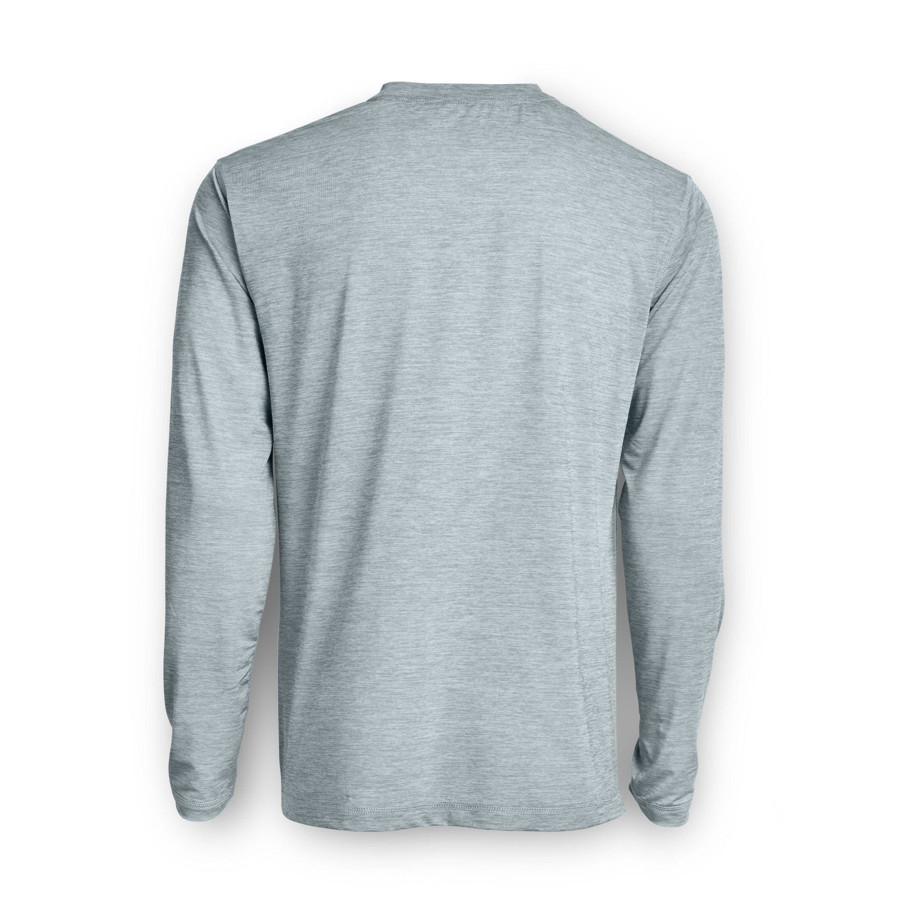 Grey Heather long sleeve active performance shirt by Scalesgear.com with sleek fit and breathable fabric.
