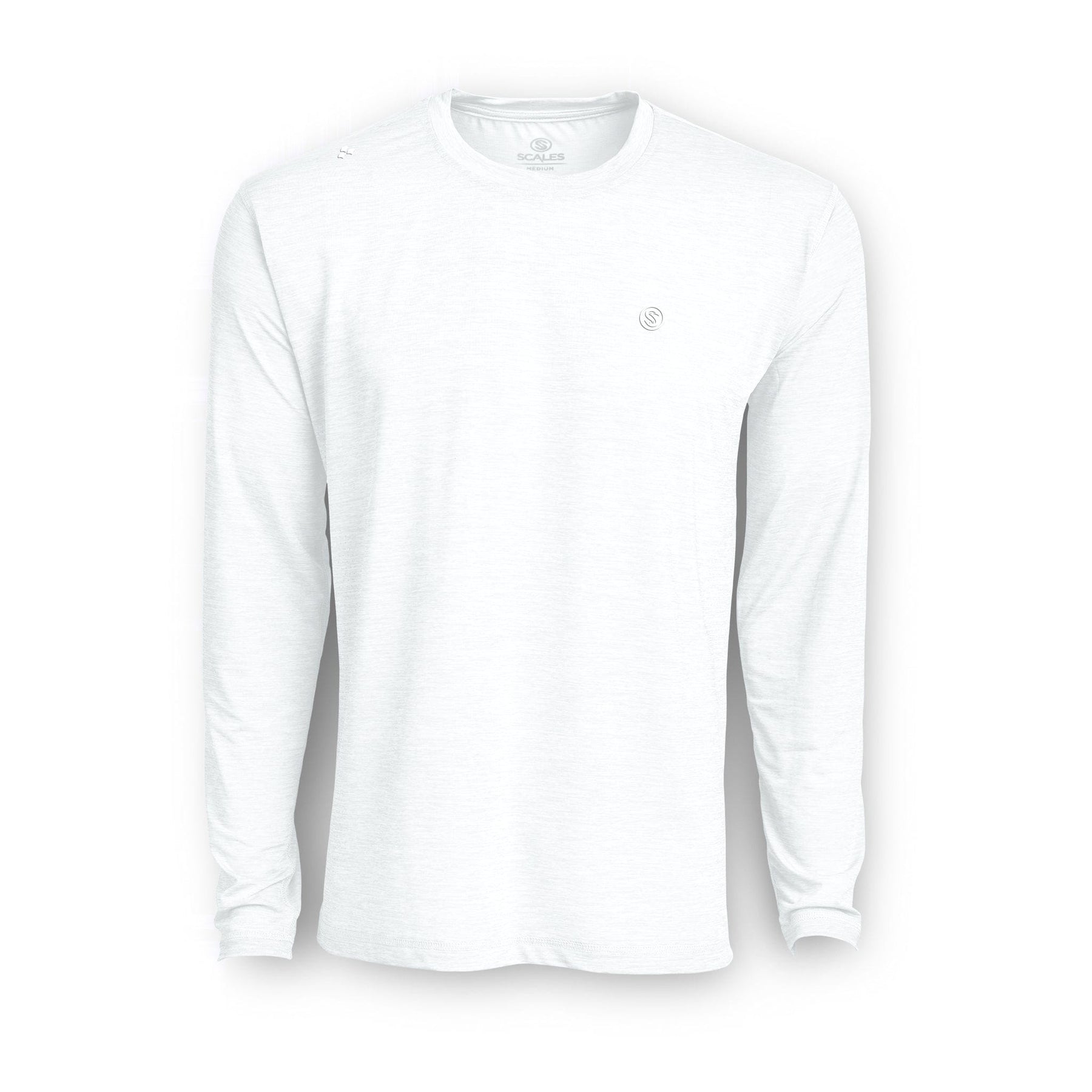 White long sleeve active performance shirt by Scalesgear.com with sleek fit and breathable fabric for athletic wear.